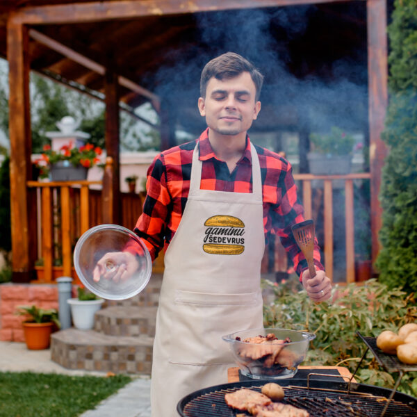34,00 €Dovana tikram virėjui, originali, aukštos kokybės prijuostė su užrašu, 65% poliesteris, 35% medvilnė. Priekyje patogi ir didelė kišenė suskirstyta į dvi dalis. Prijuostės dydis universalus, reguliuojamas metaline sagtele.